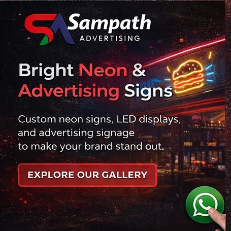 Contact Sampath Advertising for custom signage design, manufacturing, installation, and repair services.